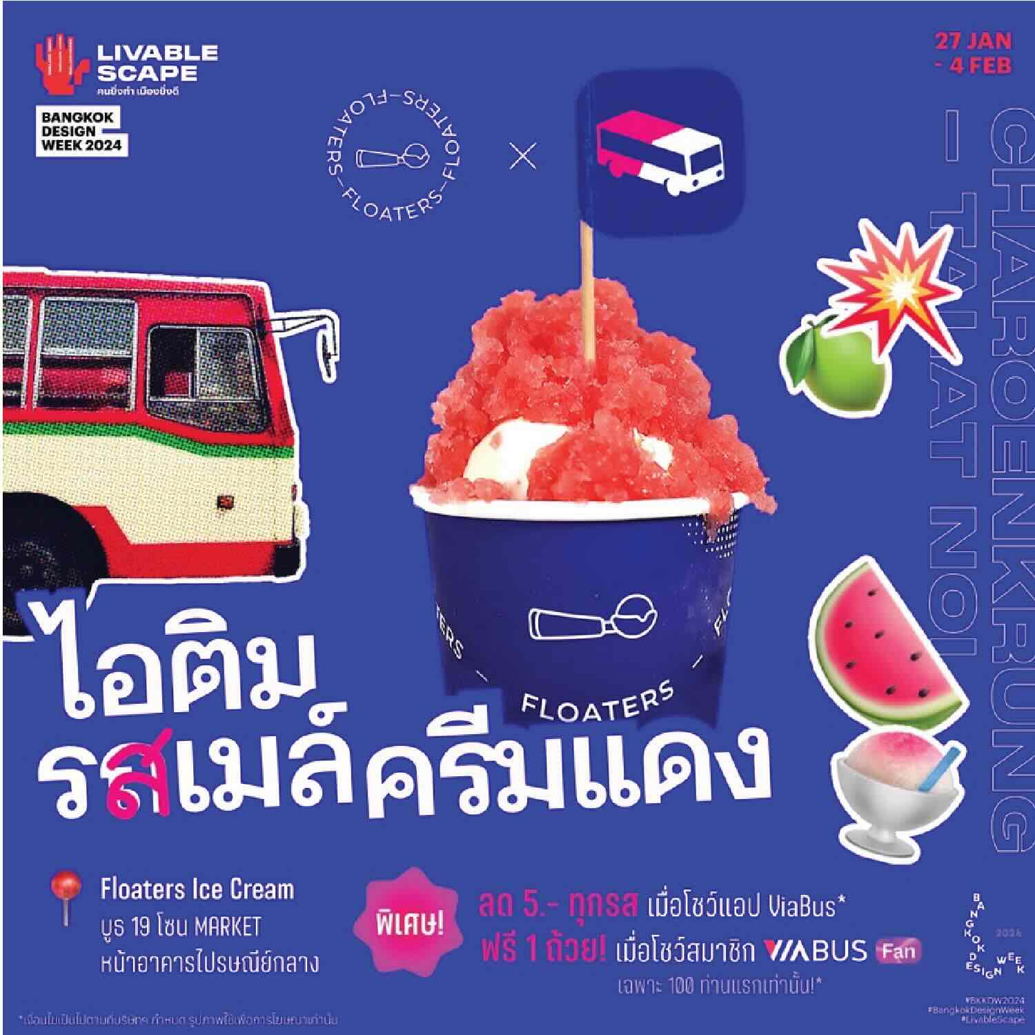 ด้วยความร่วมมือกับ Appliaction ViaBus เราได้ออกแบบรสชาติ รส(ถ)เมล์ครีมแดง ออกมา ด้วยสีของรถเมล์ และบรรยากาศของการขึ้นรถเมล์ เราจึงนึกถึงน้ำแดงมะนาวโซดาที่มีความสดชื่นกับอากาศร้อนของเมืองไทย เราจึงแยกองค์ประกอบของเครื่องดื่มเพื่อทำเป็นไอศครีม โดยตัวไอศครีมจะเป็นรสมะนาว ที่ใส่ขนม “เป๊าะแป๊ะ” แทนความซ่าของโซดา และปิดท้ายด้วย กานิต้าน้ำแดงแตงโมง ที่ให้ความสดชื่น